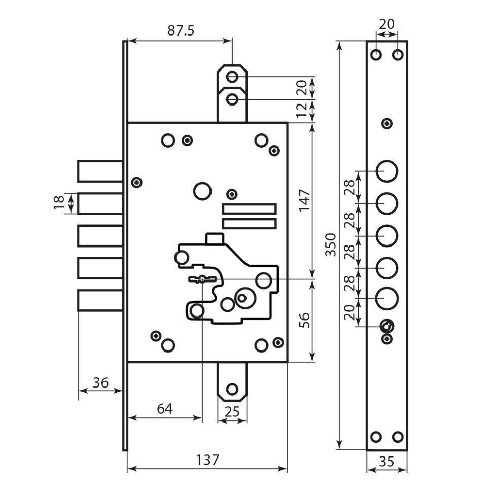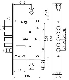 Замок 5-ригельний правий Mottura Art. 52J525D8005DC4O (40994)