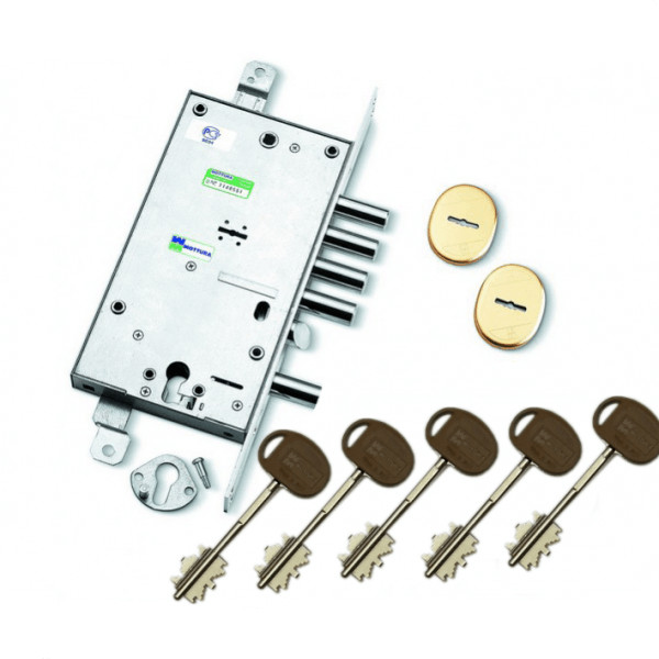 Замок 5-ригельний Mottura Art. 50798D5, 5 ключів, 60 мм, накладки, хром (49400)